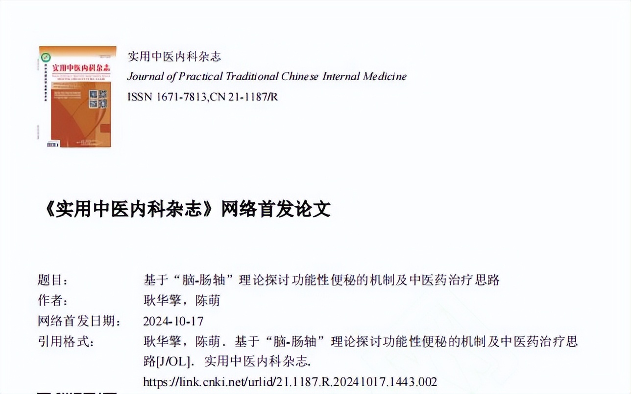 [1]耿华擎.基于“脑-肠轴”理论探讨功能性便秘的机制及中医药治疗思路,实用中医内科杂志,2024-10-17